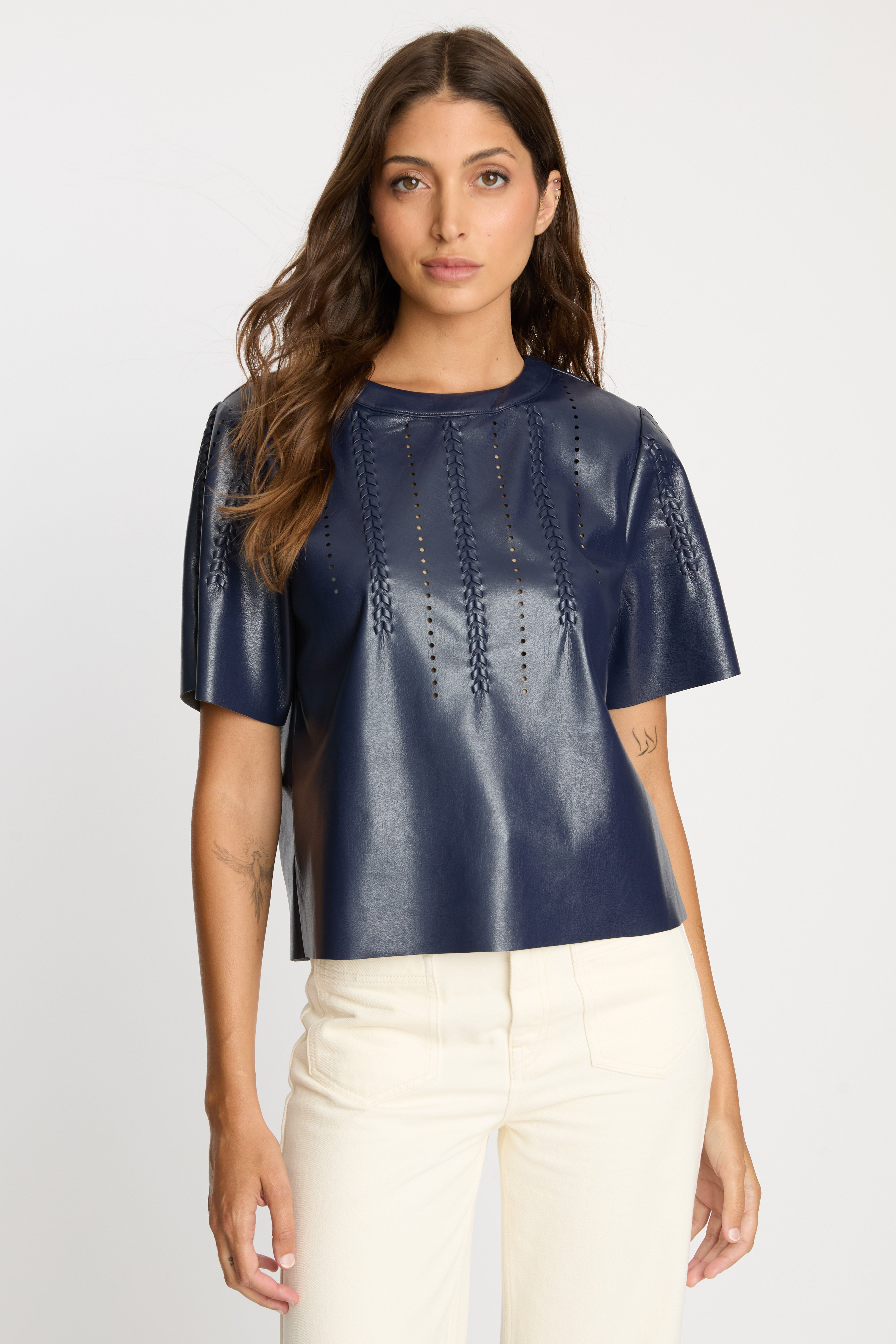 Carsyn Top in Navy Vegan Leather