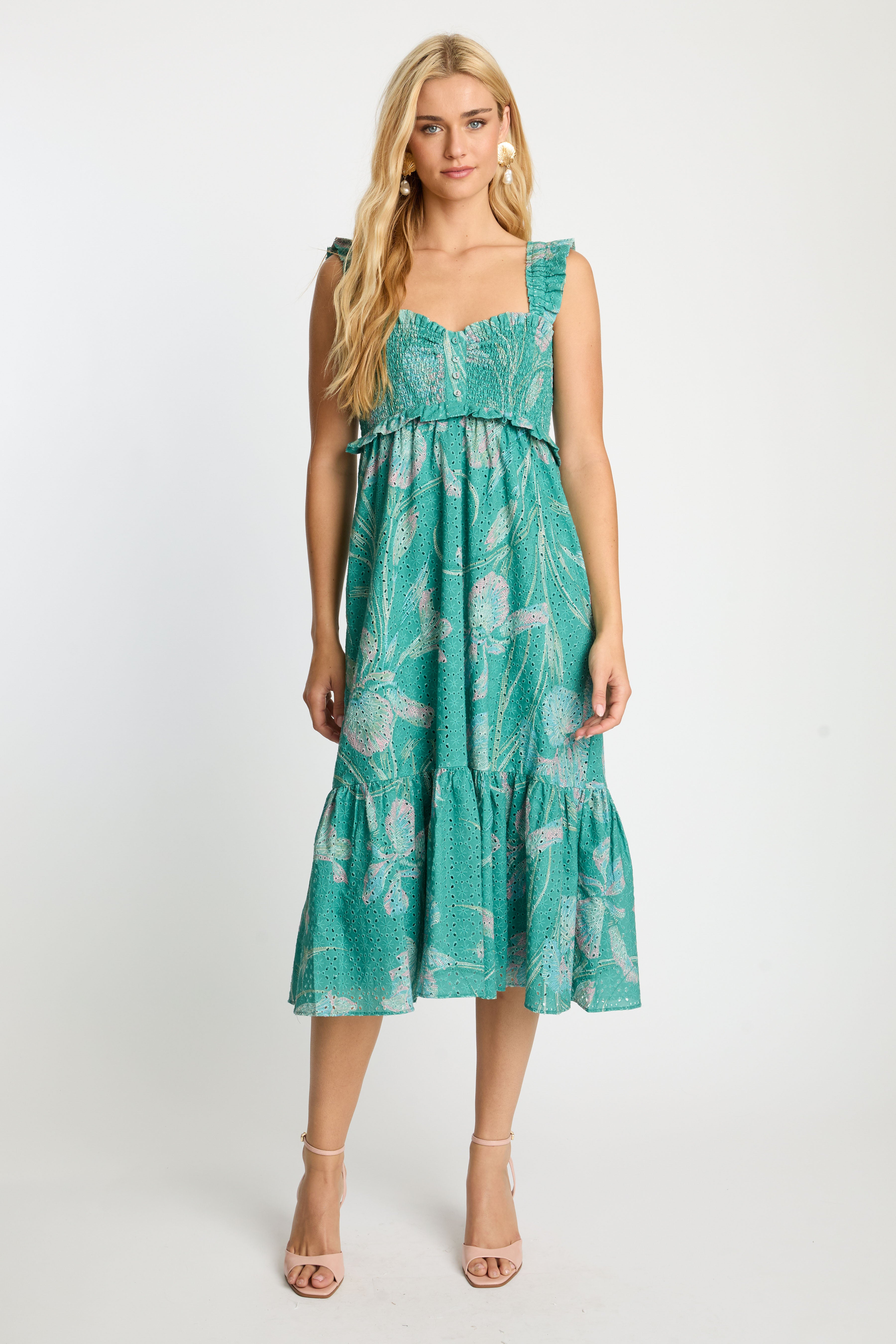 Nyx Dress in Green Ink & Bloom