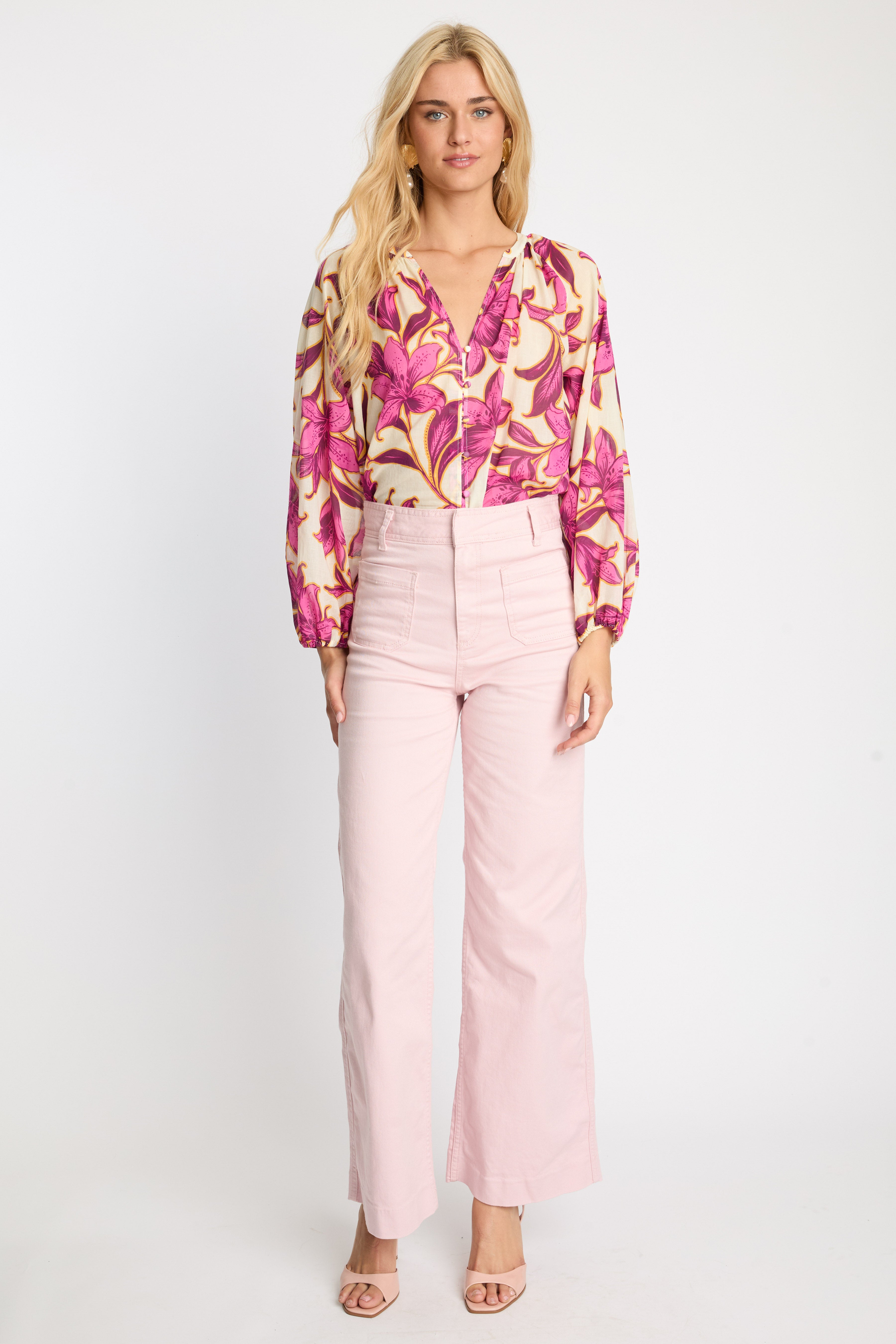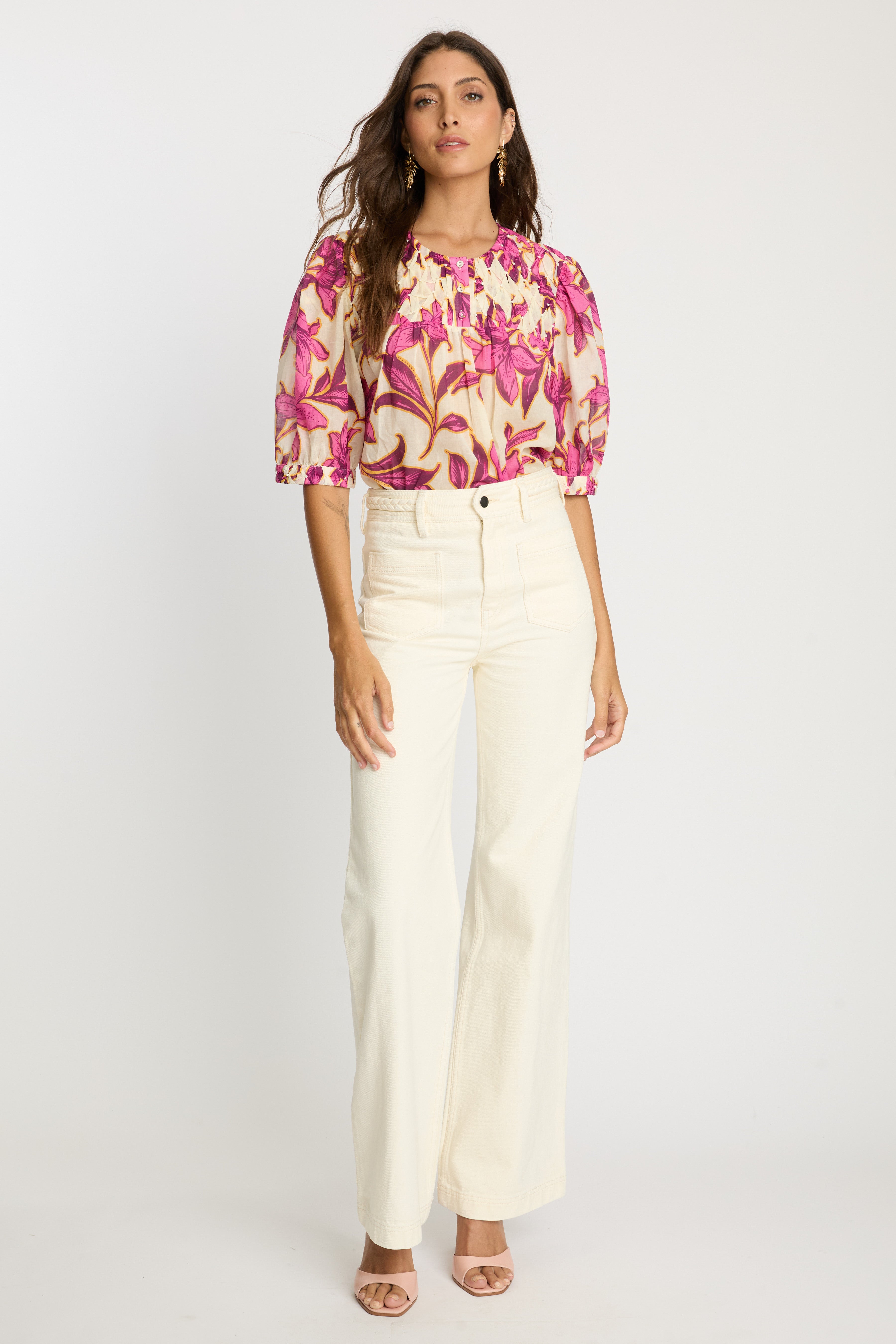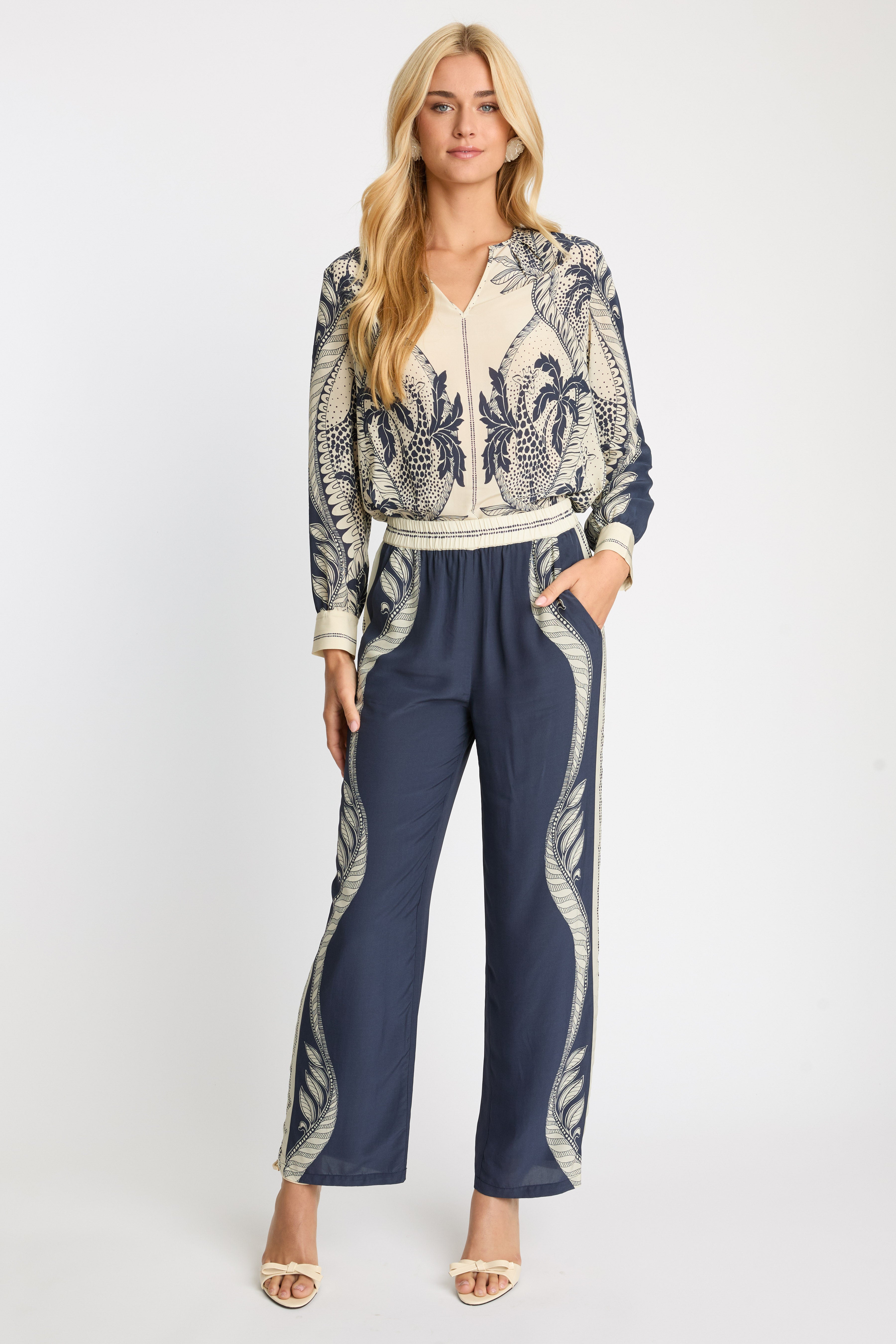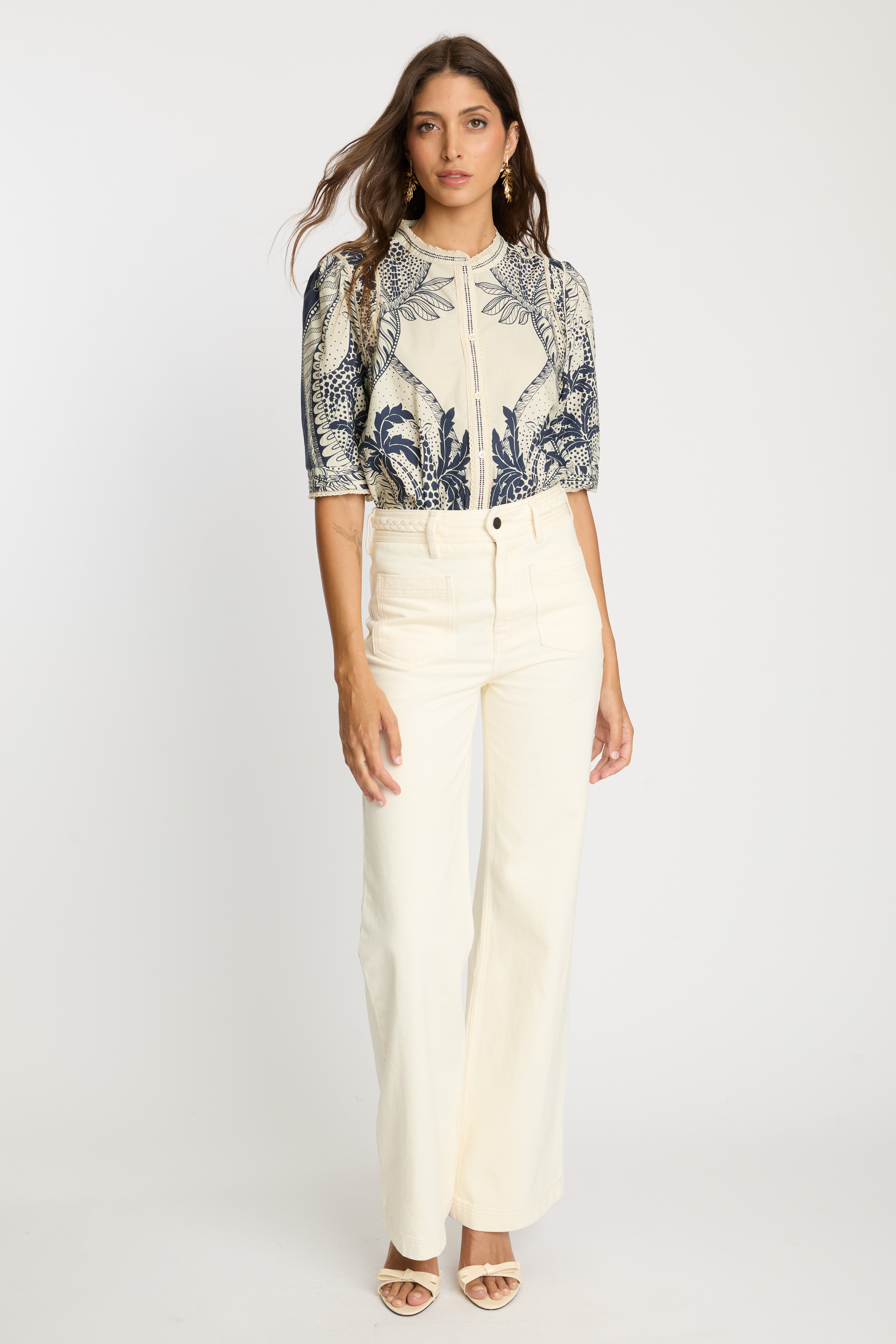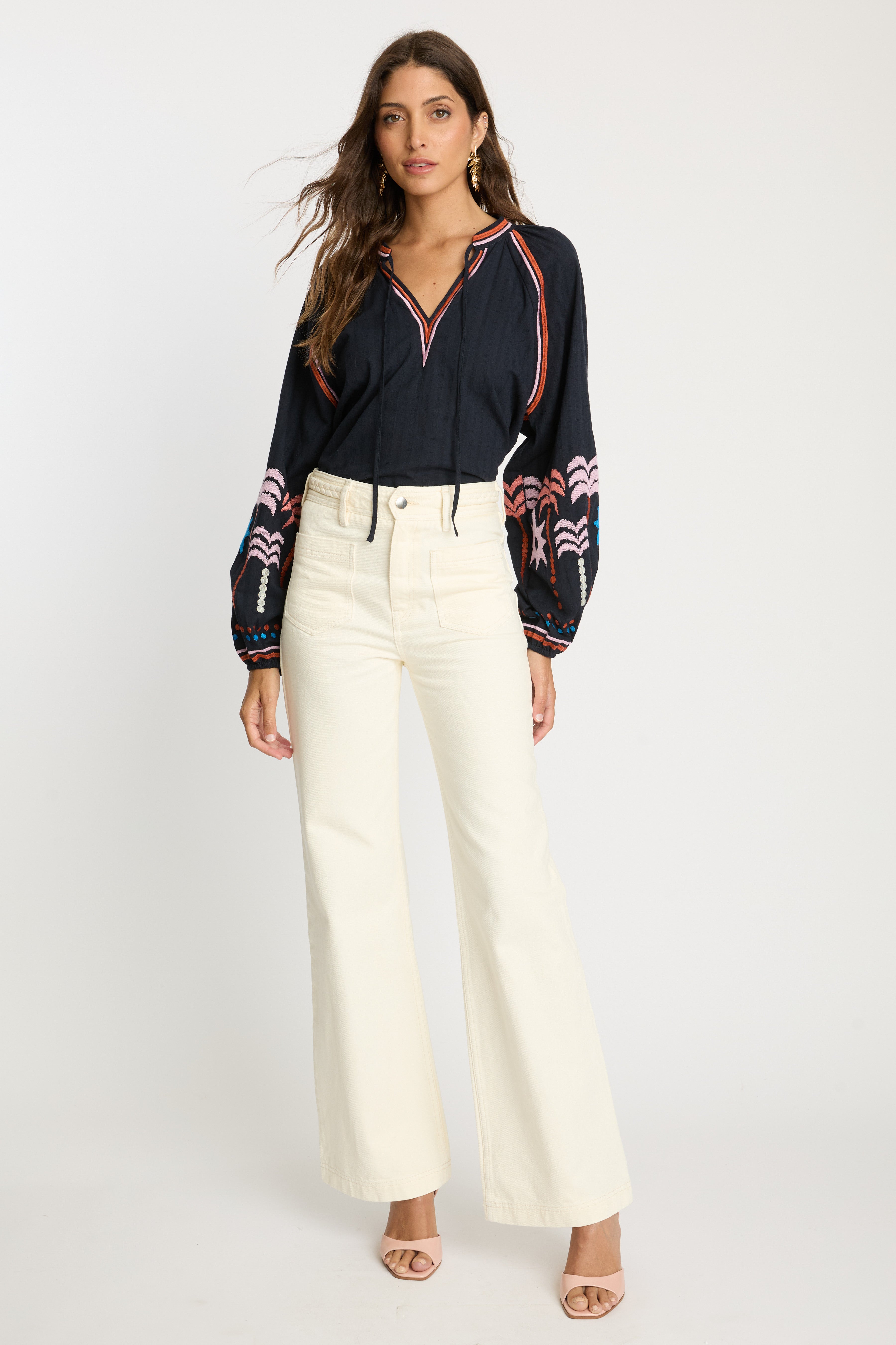 Phoebe Top in Peacoat Navy Palm Embroidery