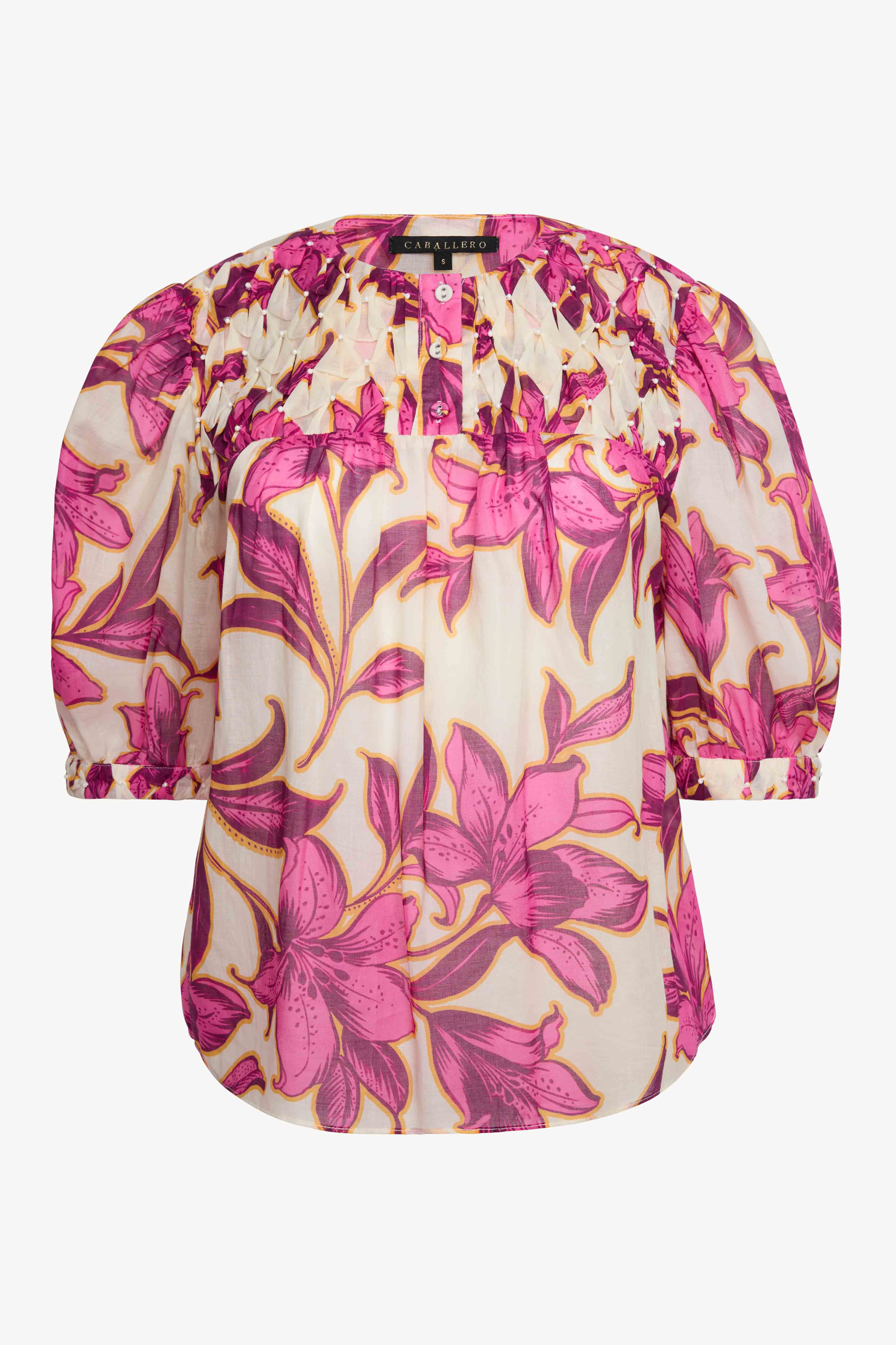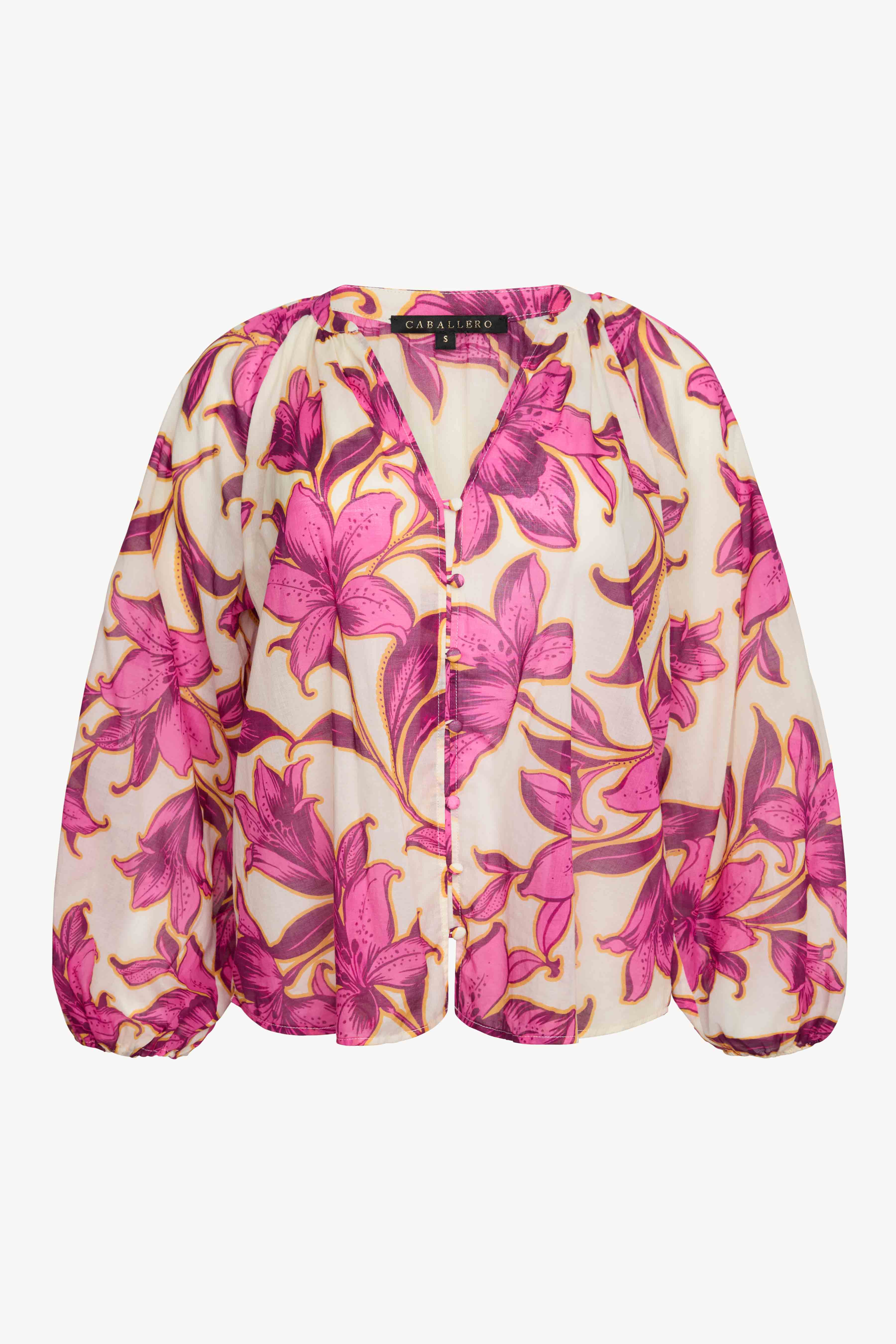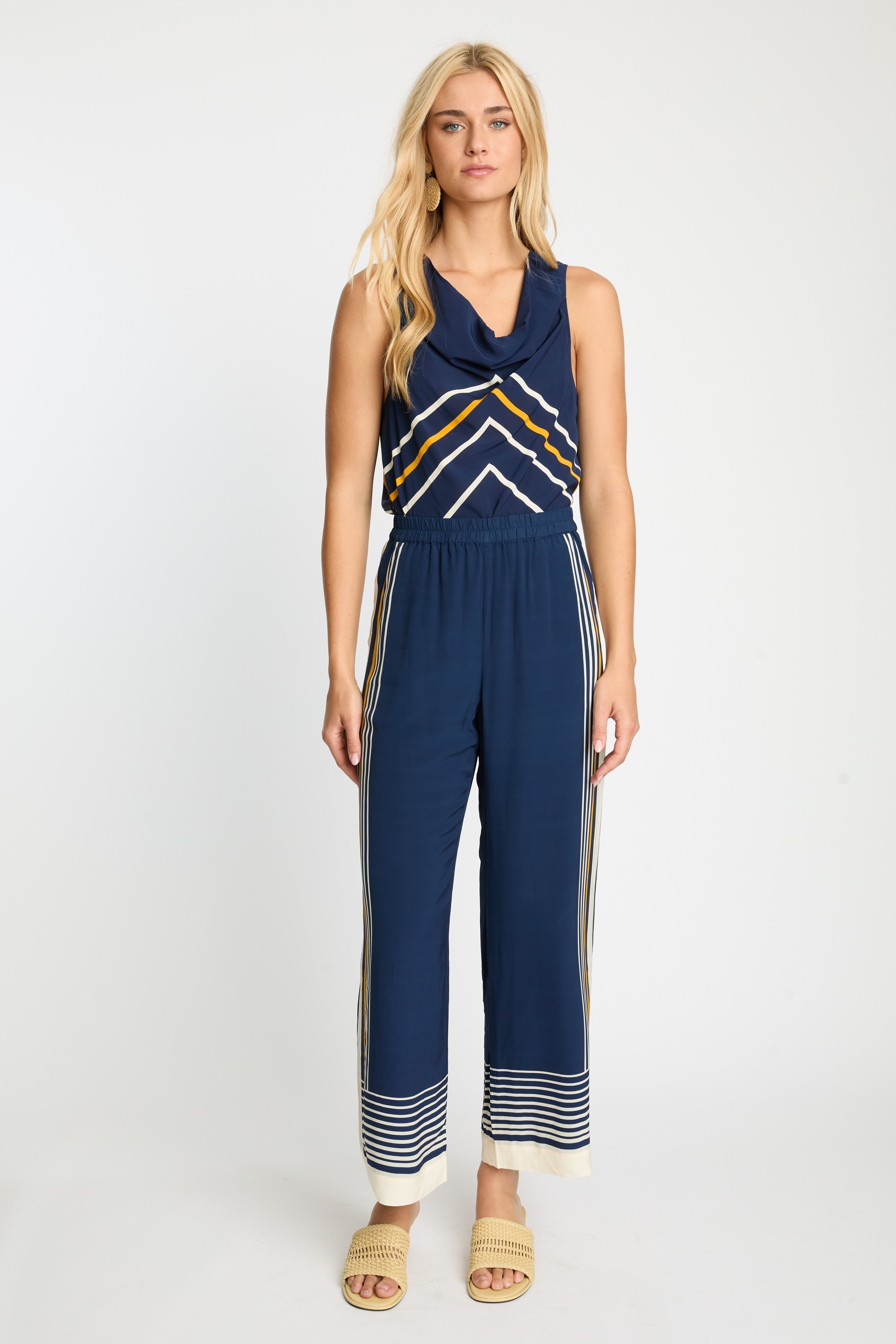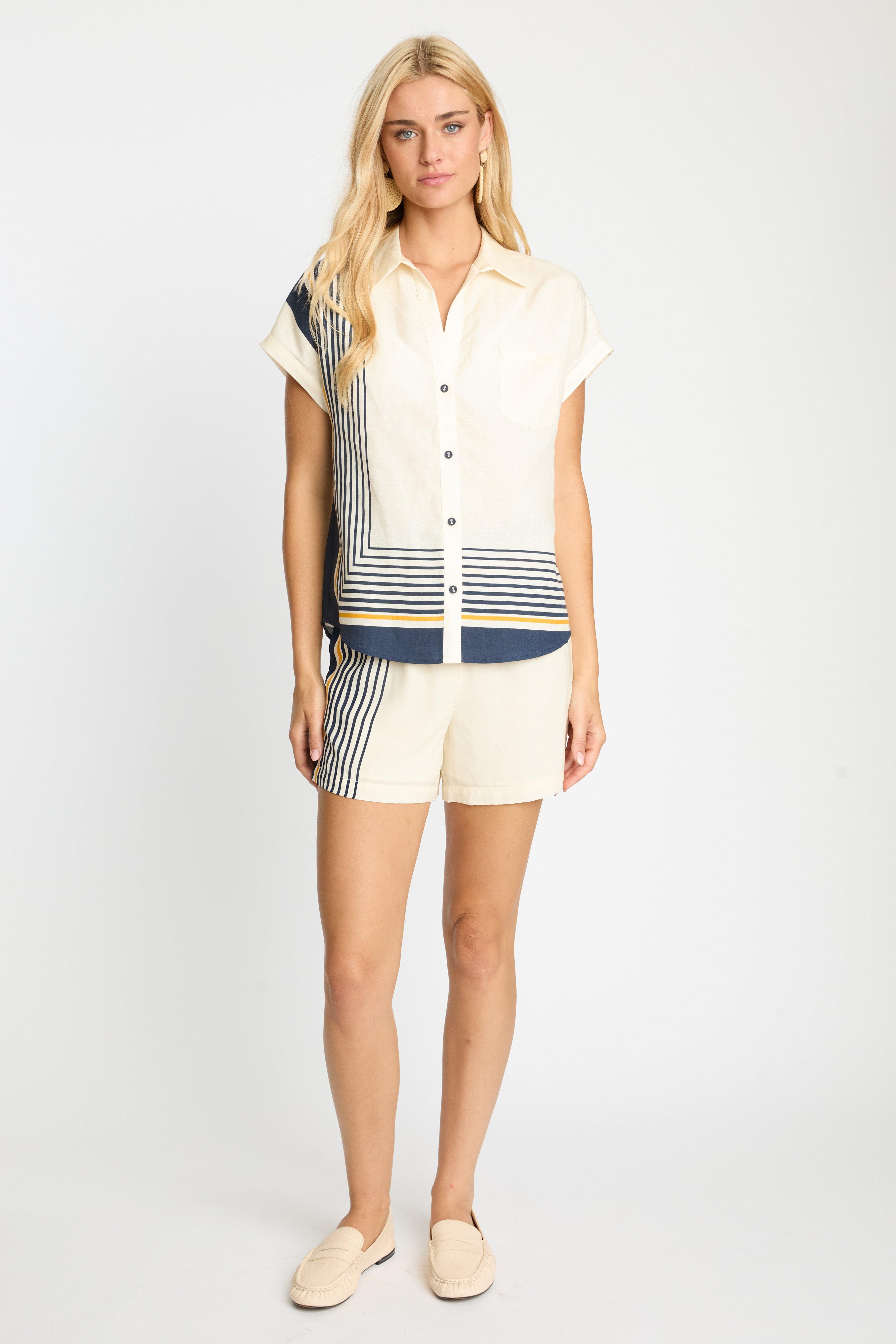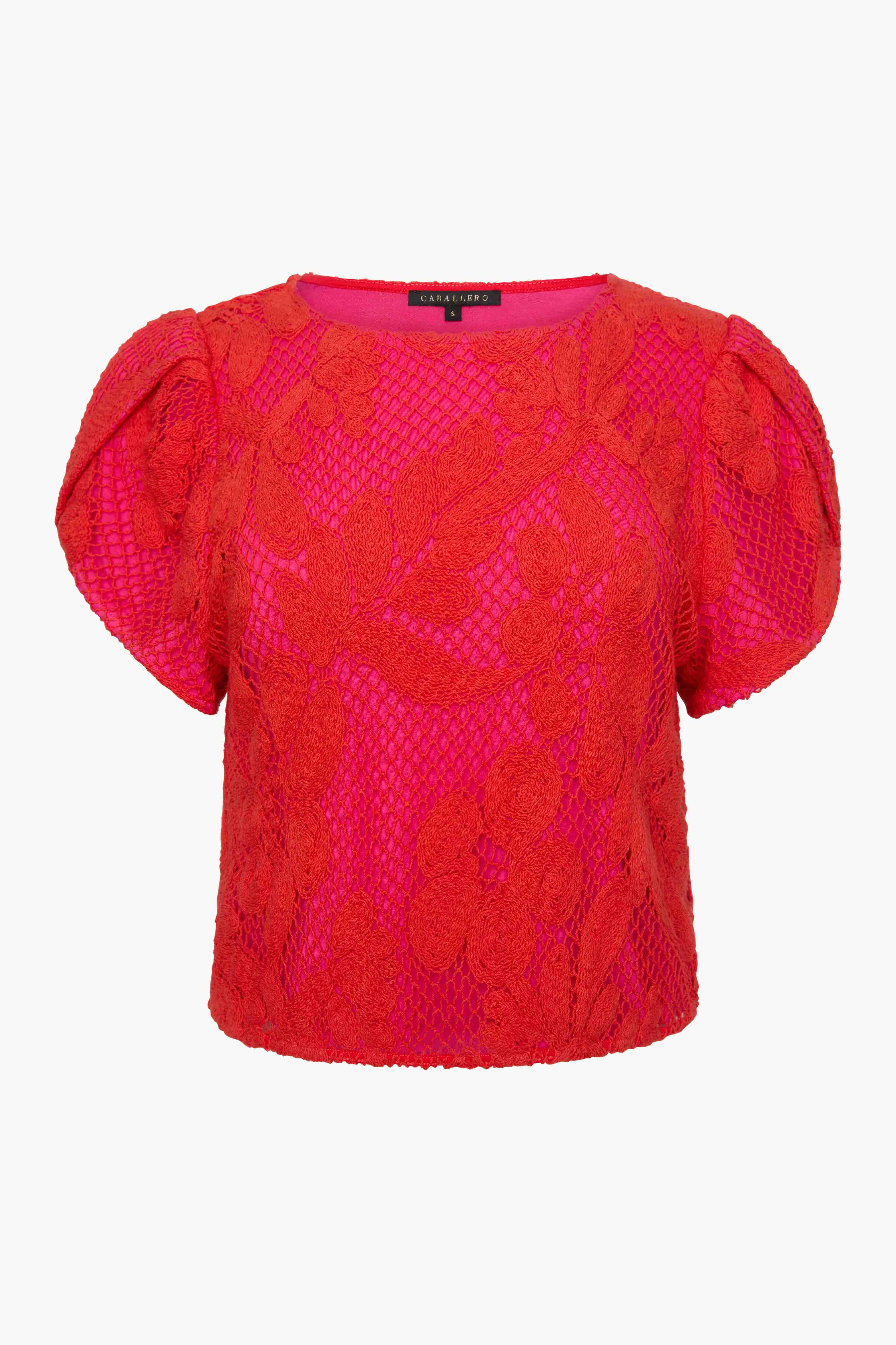 Phoebe Top in Peacoat Navy Palm Embroidery