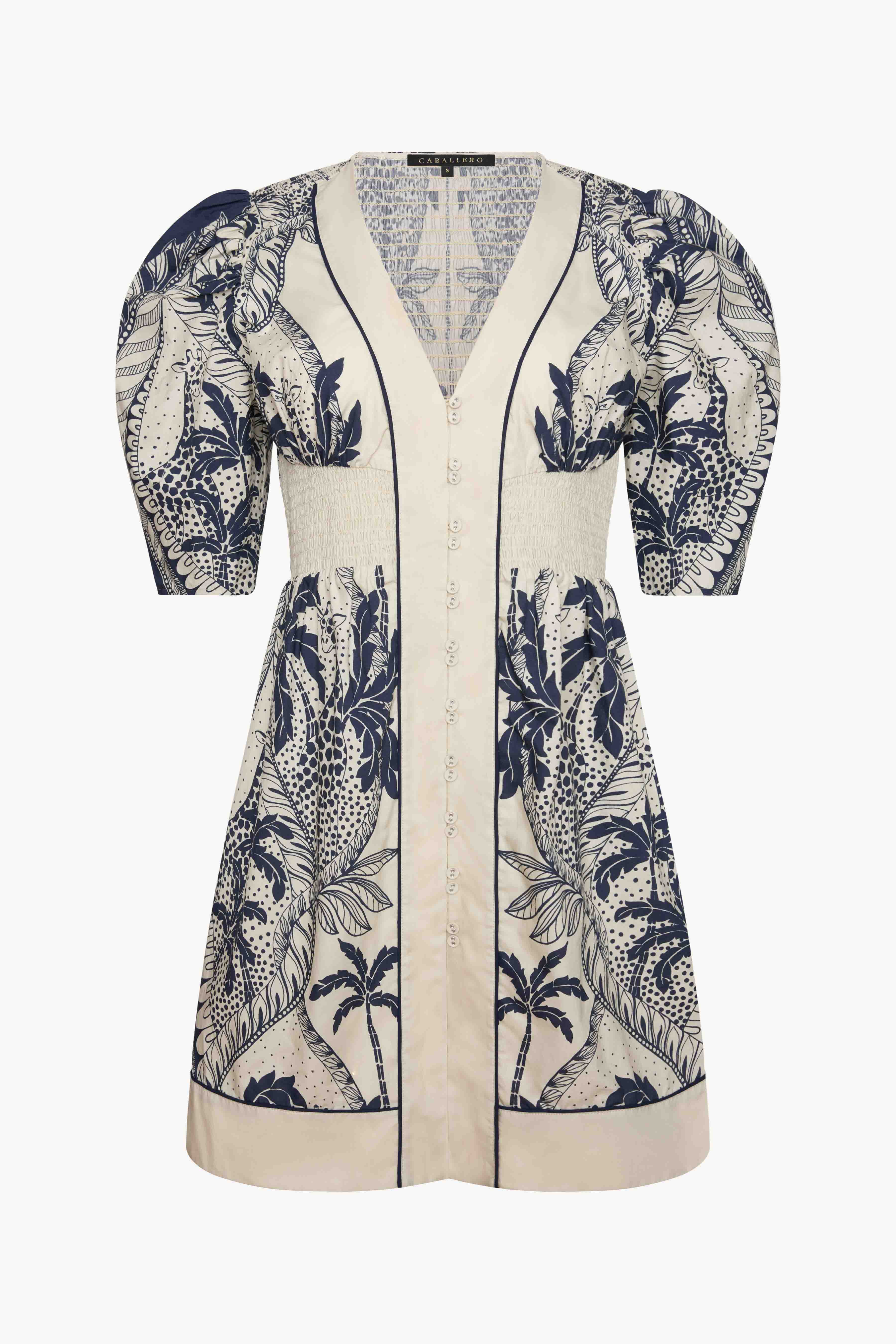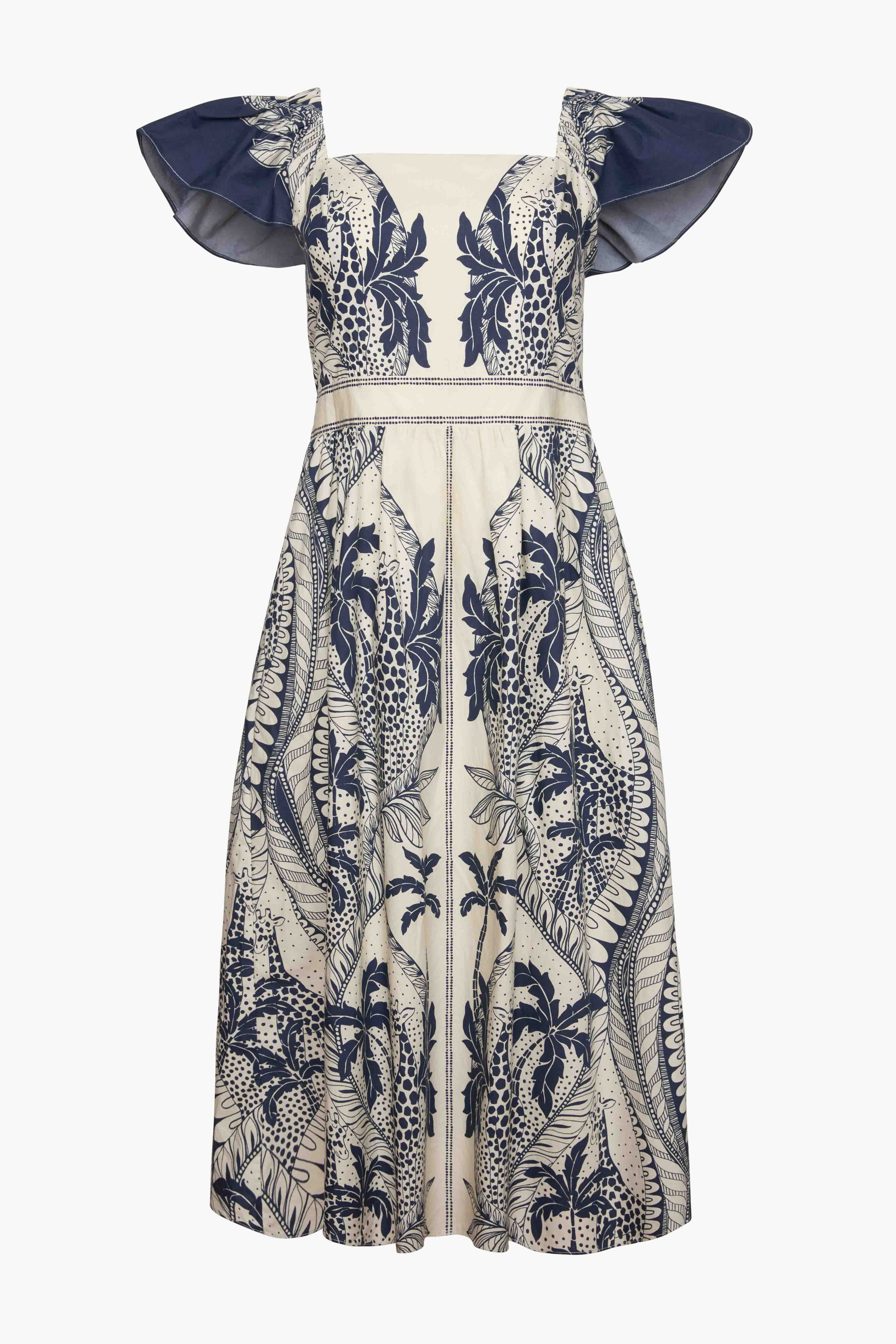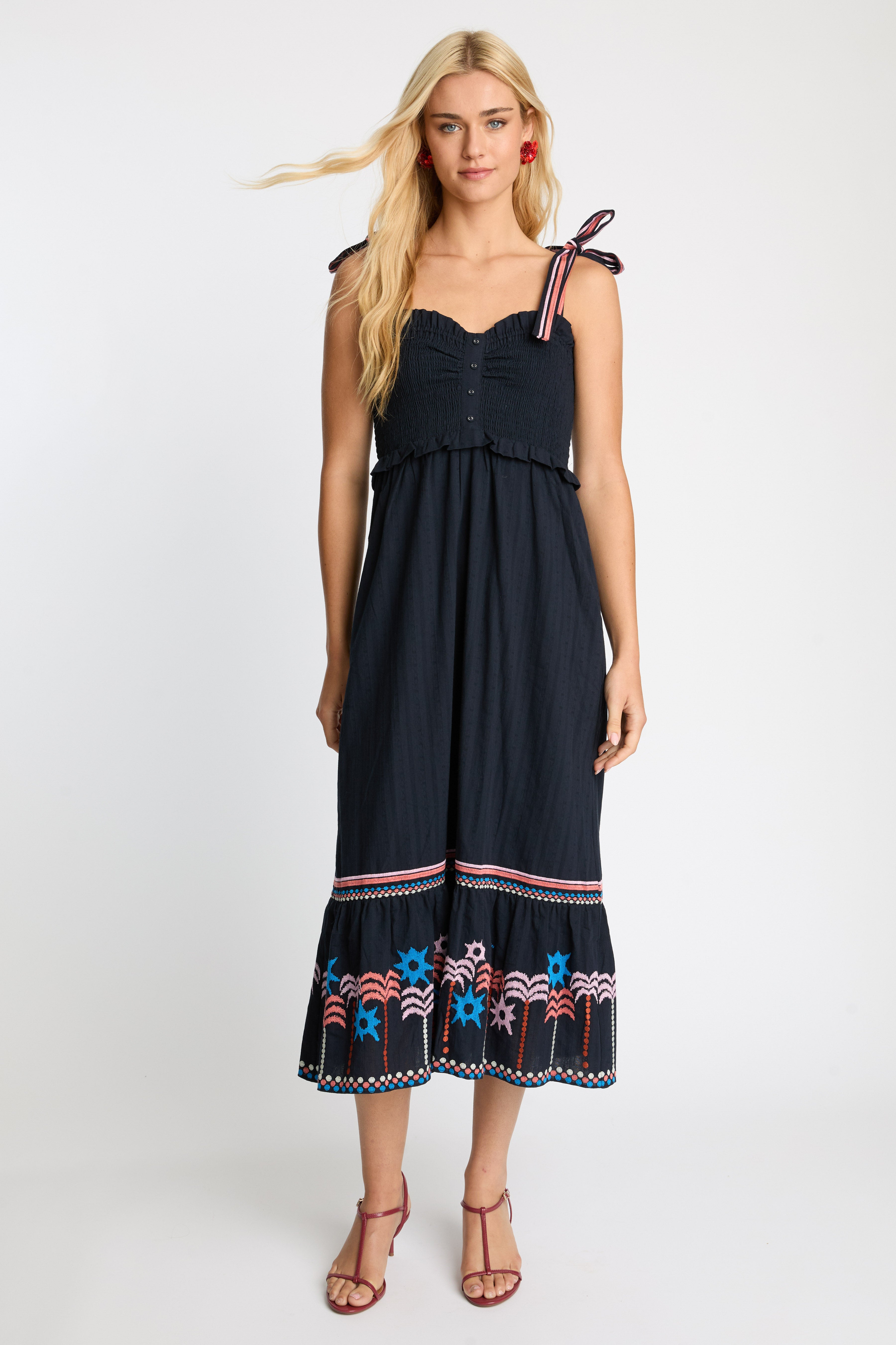 Thandi Dress in Peacoat Navy Palm Embroidery