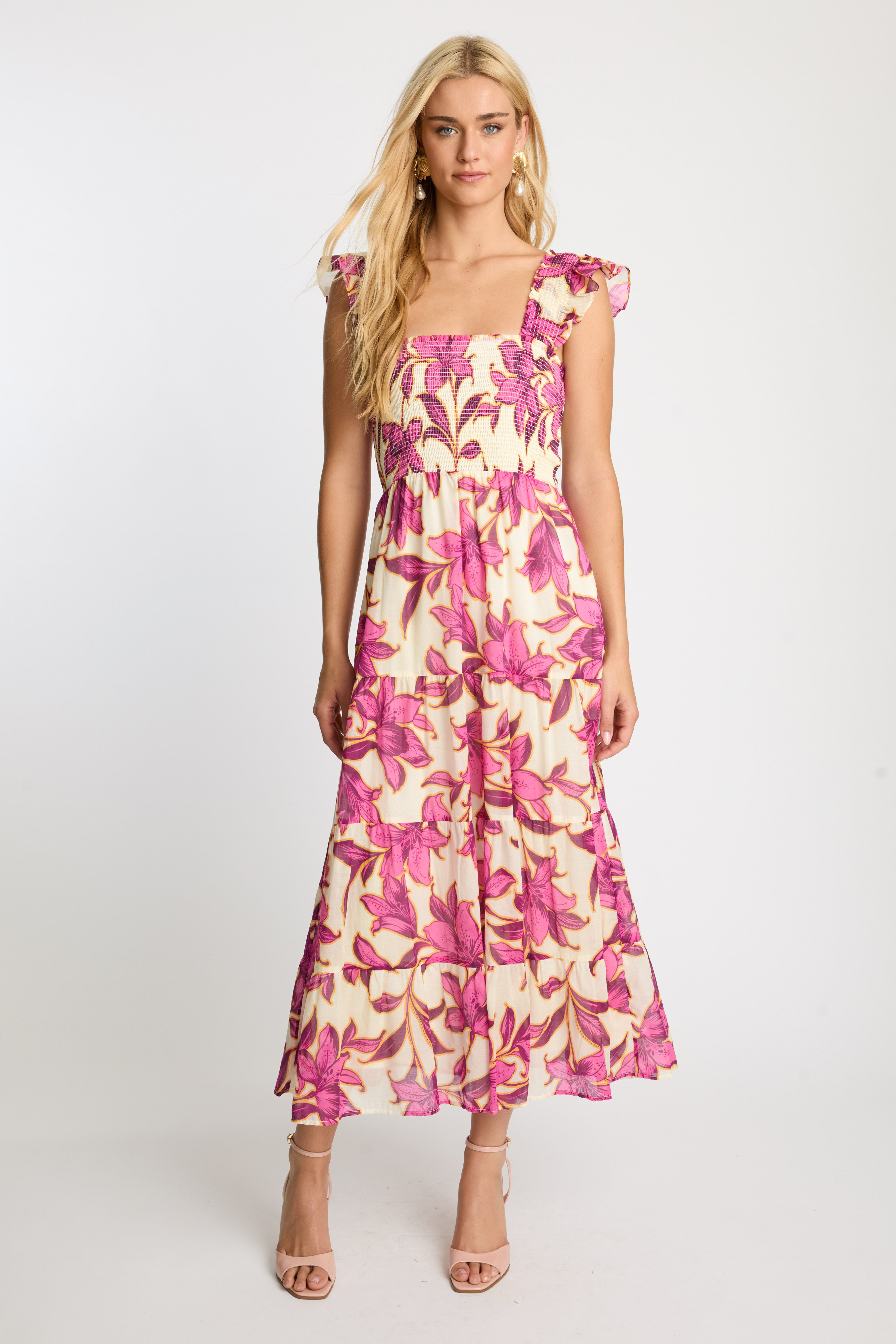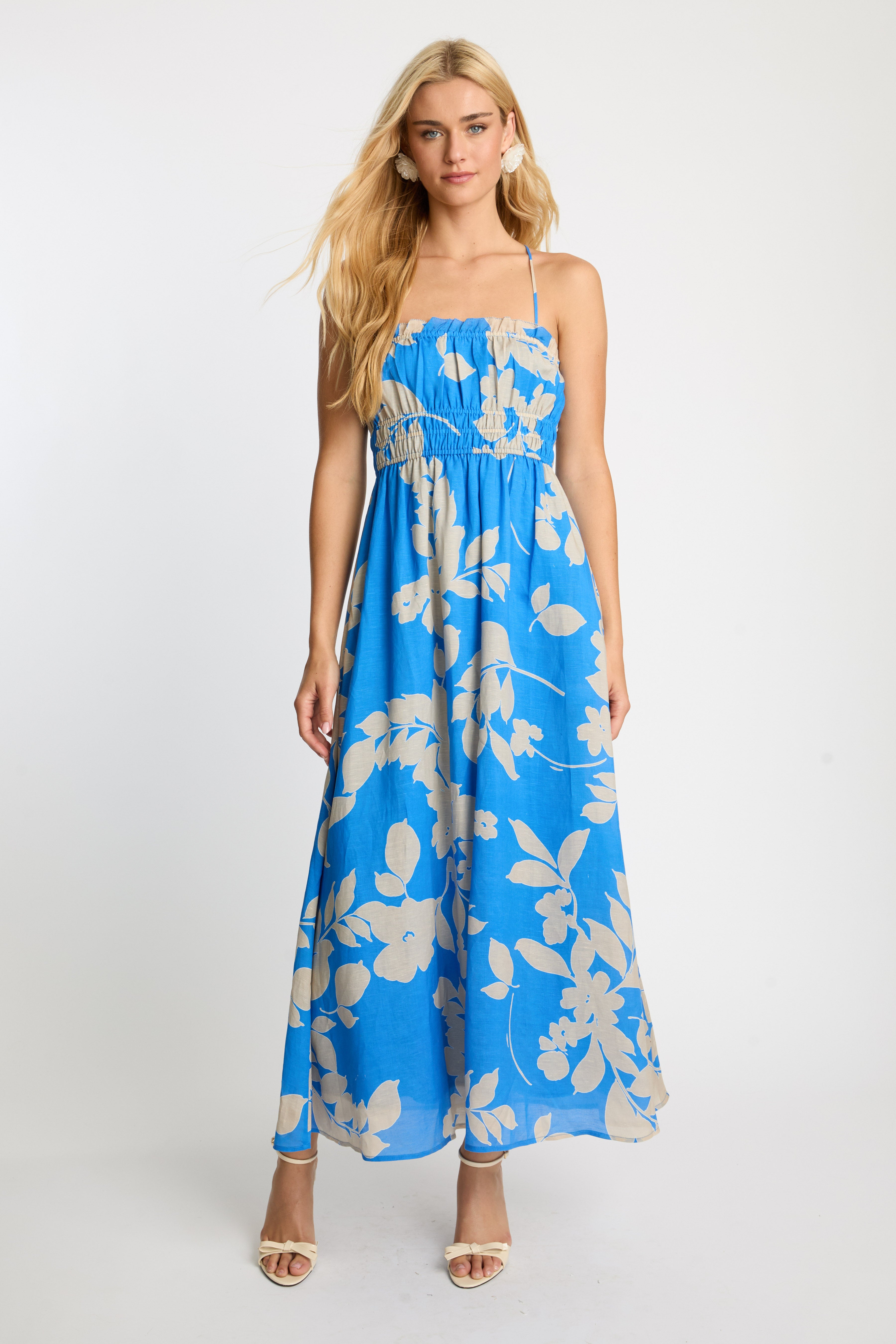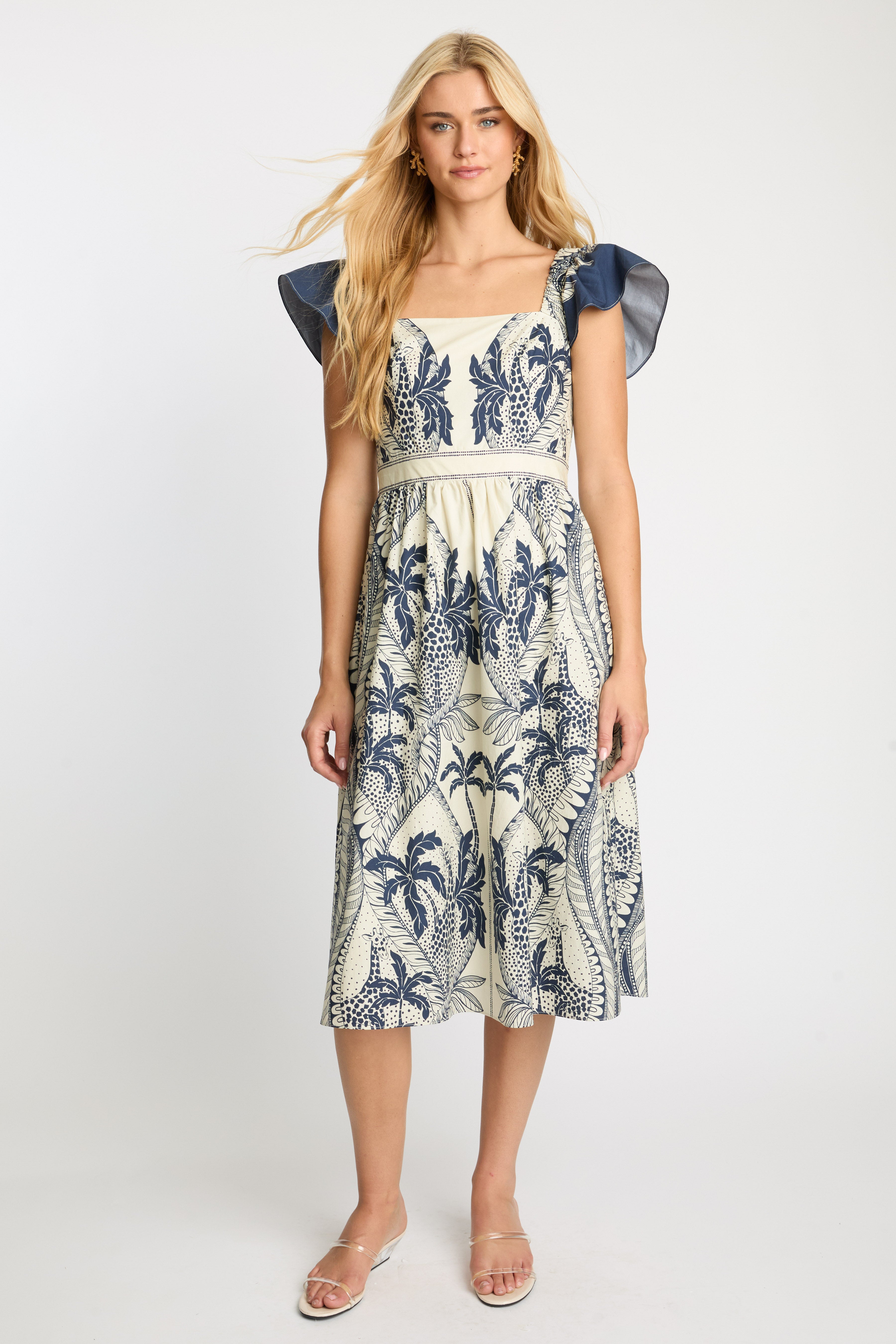 Thandi Dress in Peacoat Navy Palm Embroidery
