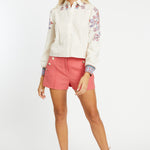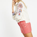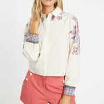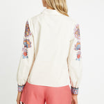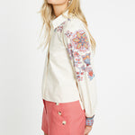 The Audrey Top in Woodblock Bloom is a beautiful long-sleeve piece that combines classic tailoring with artistic flair. Crafted from soft cotton poplin, this ivory button-up offers a clean, crisp look—perfect for the transitional summer-to-pre-fall weather.