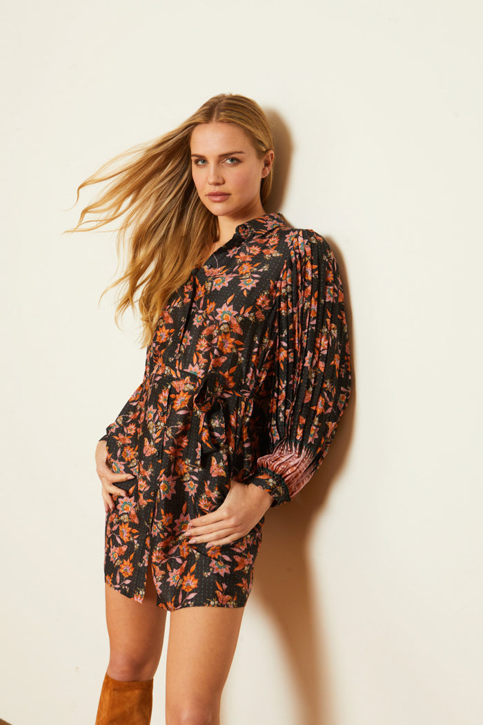 The Austin Dress graces wardrobes with sophisticated charm. This long-sleeved shirtdress, crafted from a luxurious modal-silk blend, drapes beautifully on the body with a soft, smooth texture. Its flattering silhouette features a button-down front placket, pleated sleeves, and convenient pockets for a stylish and modern look.