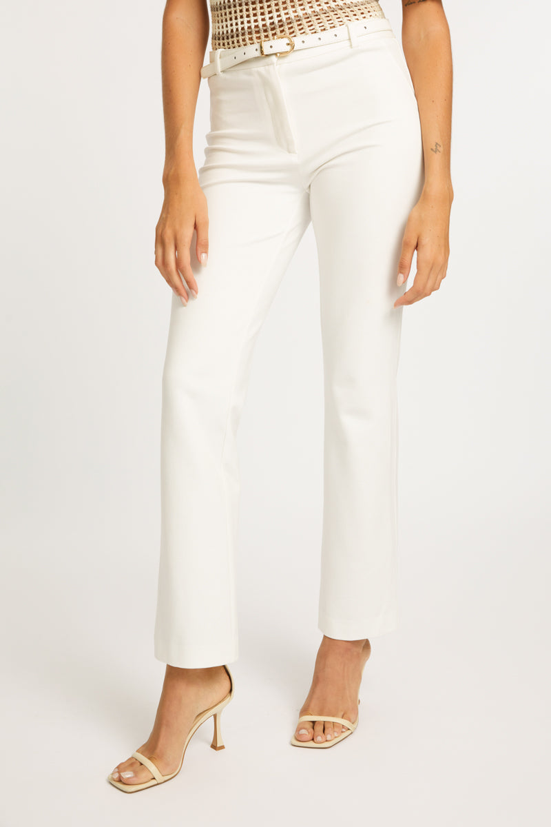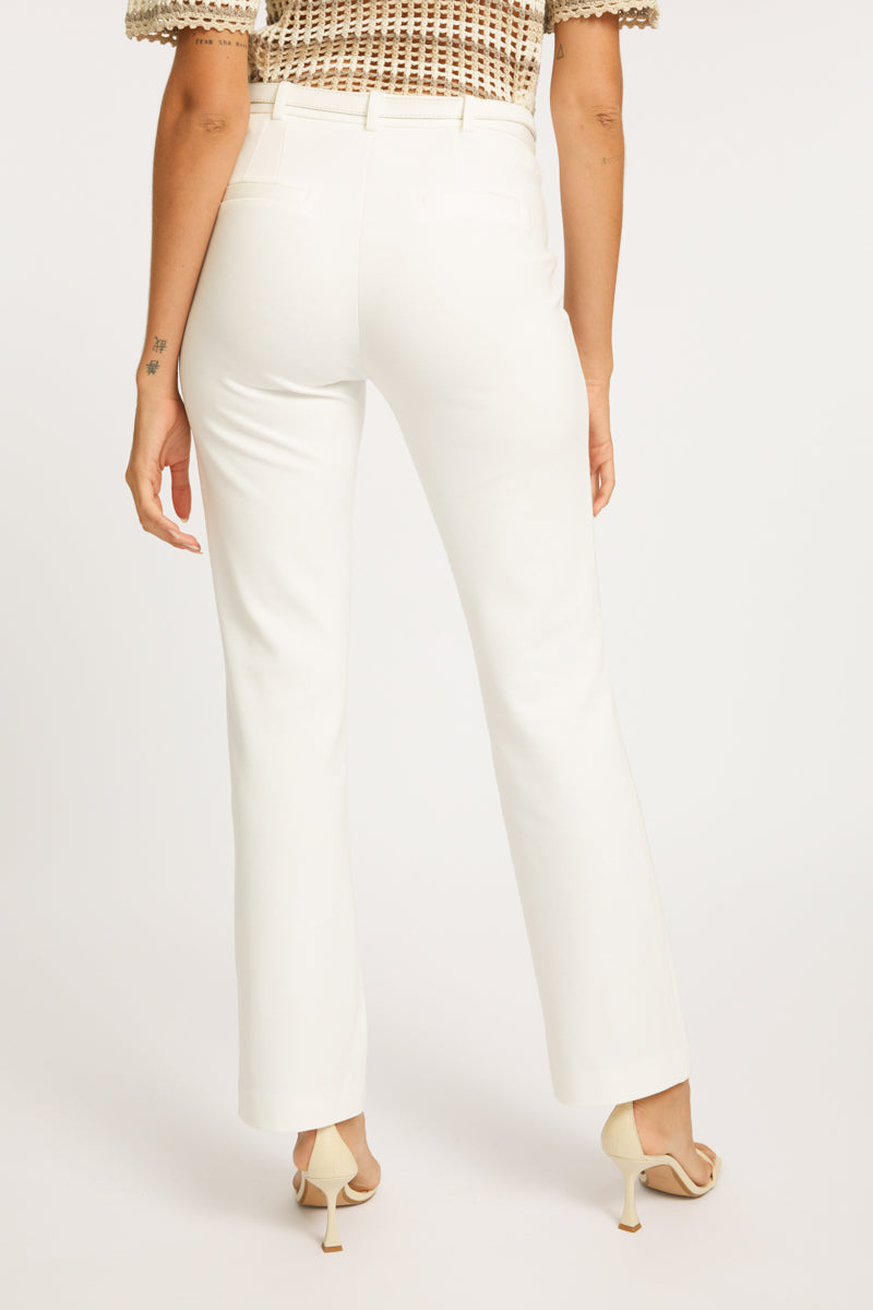 Timeless and versatile, the Avalon Pant is designed to flatter with its form-fitting silhouette in a classic ivory hue. Featuring a straight pant leg, this sleek design is both modern and sophisticated, perfect for a variety of occasions.