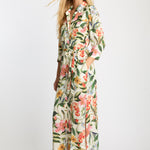 The Azura Dress in Buttercream Floral is an effortlessly elegant full-length silhouette designed to make a statement. Featuring our romantic Buttercream Floral print, the dress showcases expressive blooms in shades of pink, orange, blue, and lush green layered over a soft, creamy backdrop for a look that feels both timeless and fresh.