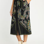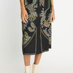 Introducing our Claudette Skirt in the vibrant Paisley Forest print. This striking style features belt loops and a self-tie waist for a customizable fit, while a hidden placket runs elegantly down the length of the skirt for a clean, streamlined look.