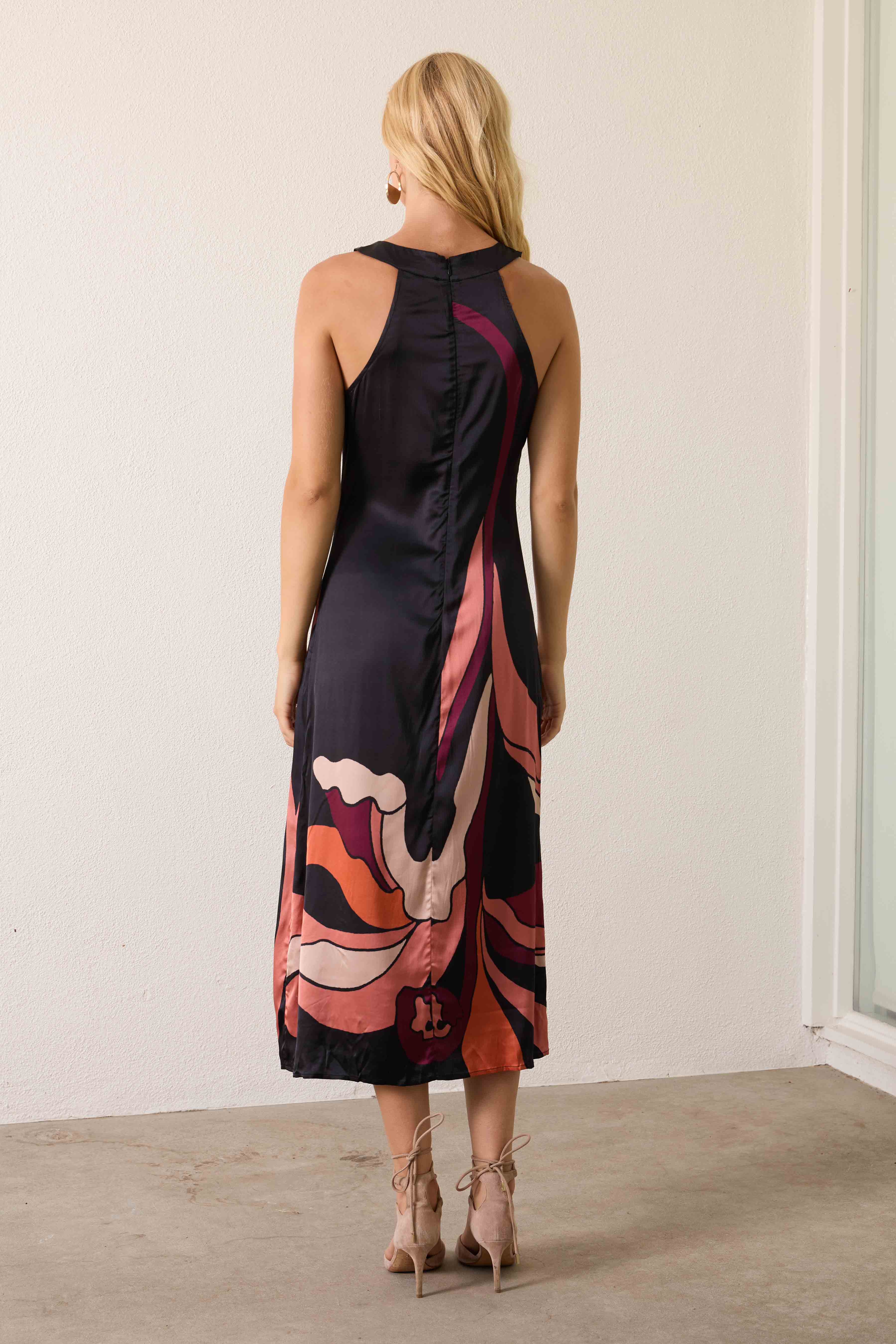 The Daylen Dress in our African Paradise print is a chic midi-length style that blends ease with elegance. Designed with a modern racer-back, it drapes beautifully in a straight silhouette.