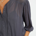 A matching button placket adds subtle detail, while delicate stitched lines along the yoke and placket bring texture and refinement to this solid staple. The Esme Top pairs beautifully with both denim and flowy skirts for a casual yet elevated look.