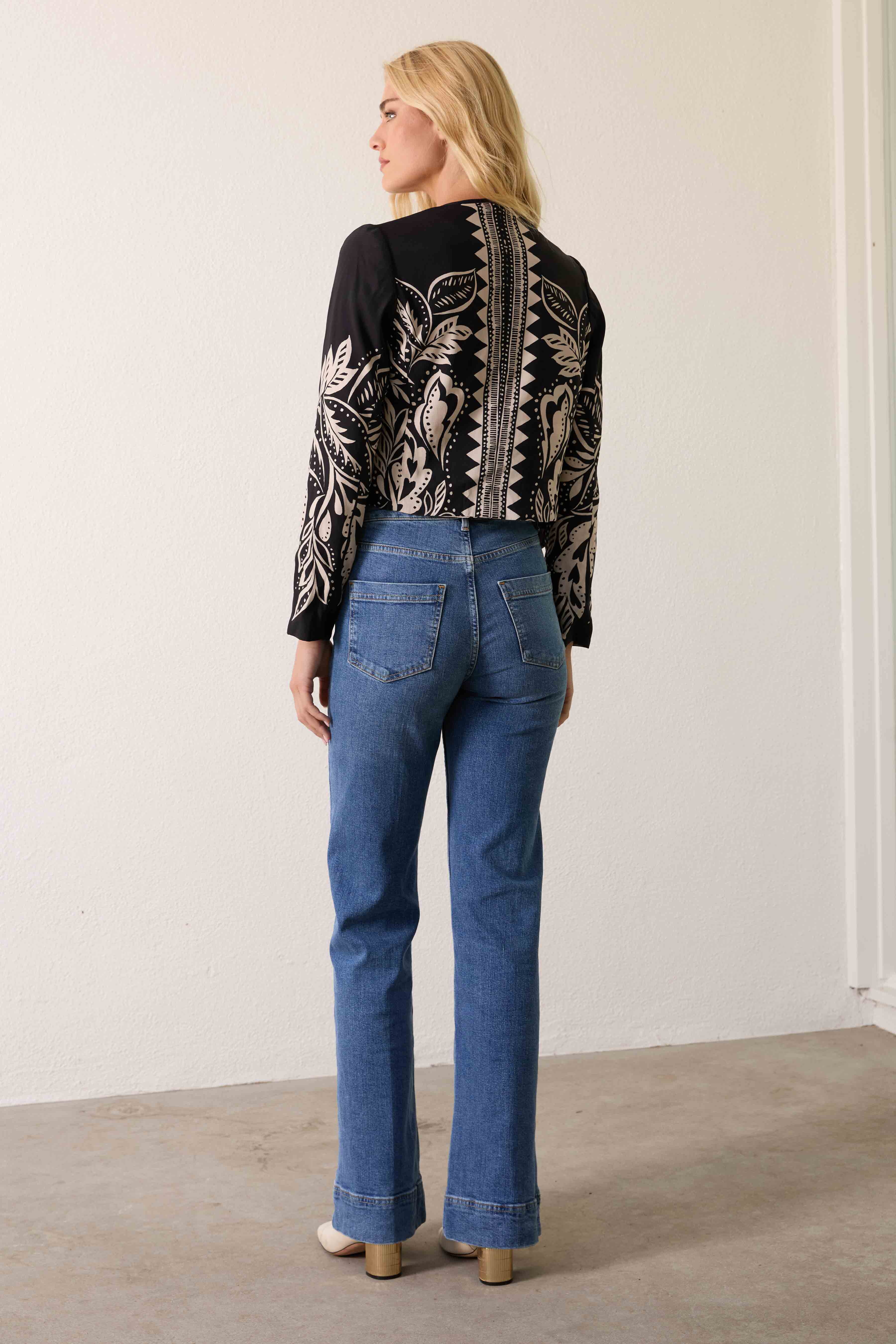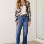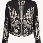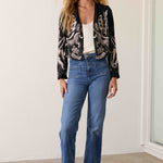 The Ezra Reversible Blazer in our bold Zebra Fern print is the perfect balance of polish and versatility. Featuring a clean, tailored silhouette, this jacket makes a striking statement with its black-and-ivory motif of stylized leaves, ferns, and playful zebras.