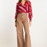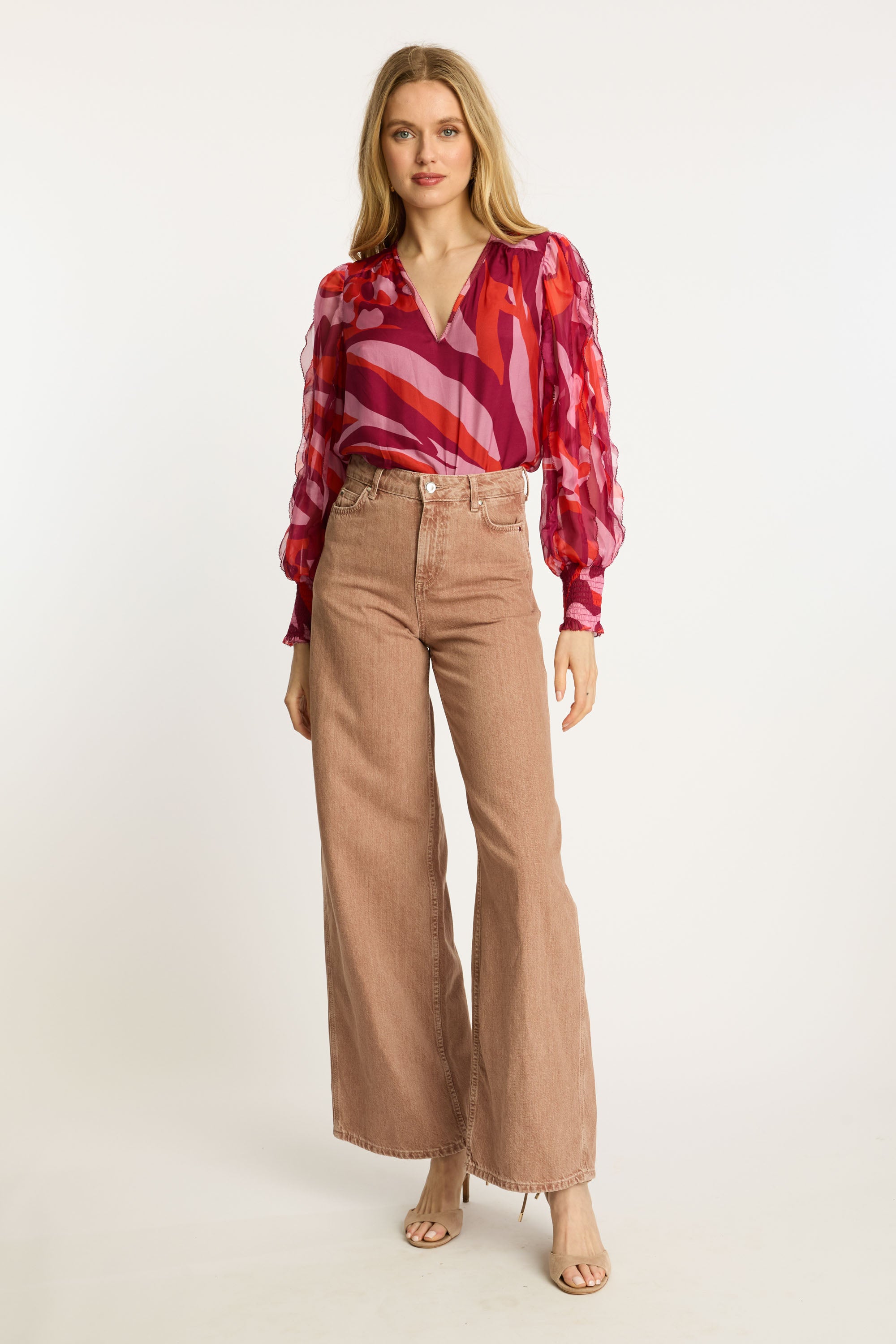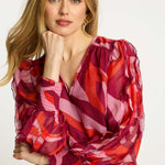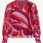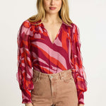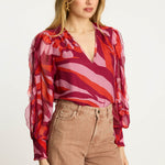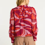 The Flora Top in African Sunset pairs bold color with effortless elegance. Designed with a relaxed silhouette, softly gathered shoulders, and sheer long sleeves, it drapes beautifully for a feminine, flattering fit.