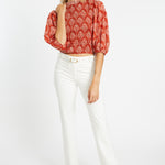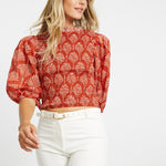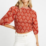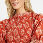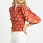 Made from breathable, sustainable Lyocell, the Genie Top is your go-to piece for effortless summer style. Featuring our Ginko Breeze Rust print, the top showcases a repeating fan-shaped motif inspired by ginkgo leaves. The warm rust-colored base and soft ivory design create a striking yet natural contrast that captures the essence of the season.