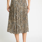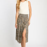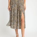 Designed with a flattering high-rise waist and a soft, flowing drape, the Glenda Skirt is finished with a 2 front slits that adds movement and subtle allure. Easy to dress up or down, it pairs beautifully with simple knits, tucked-in blouses, or matching Golden Leopard pieces for a coordinated look.
