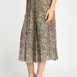 The Glenda Skirt in Golden Leopard is a fluid, statement midi designed to move effortlessly with you. Featuring a classic leopard print reimagined in warm, golden-beige tones with organic black spotting, this skirt brings depth and refined boldness to a timeless silhouette.