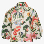 The Juliette Top in Buttercream Floral brings a touch of romantic charm to everyday dressing. Crafted from crisp cotton poplin, it offers a breathable feel with gentle structure that holds its shape beautifully throughout the day. The relaxed button-down silhouette features a collared neckline and billowed sleeves gathered at the cuffs for an effortless, feminine finish.