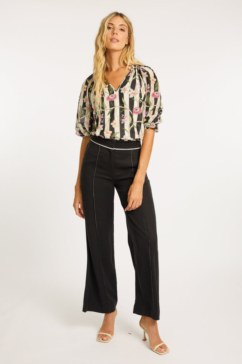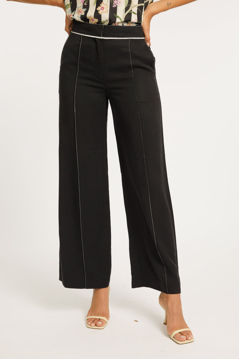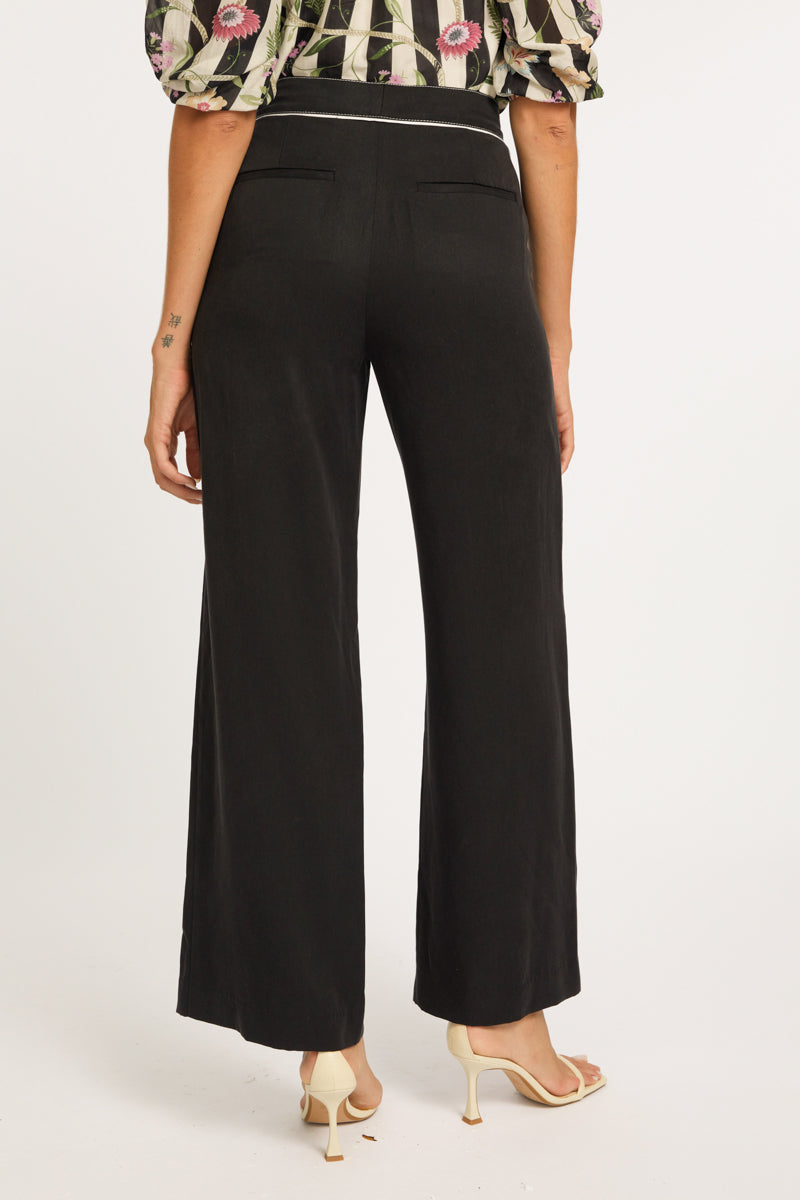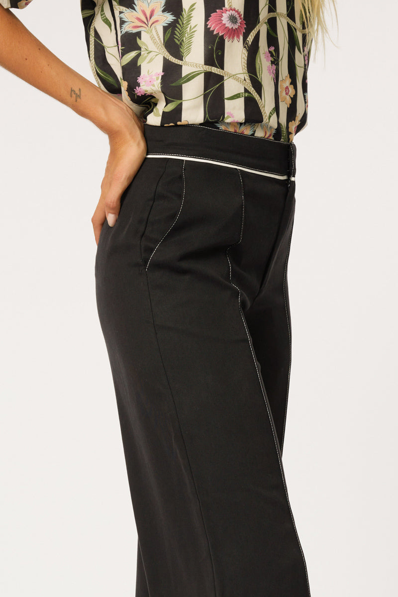 The Lincoln Pant is a sophisticated and stylish addition to your wardrobe, designed in a deep peacoat navy color. Featuring a fitted waist for a flattering silhouette, these pants are accented with ivory piping under the waistband and along the sides, adding a subtle yet striking contrast. The ivory topstitching enhances the design with a refined finish, creating a polished look.
