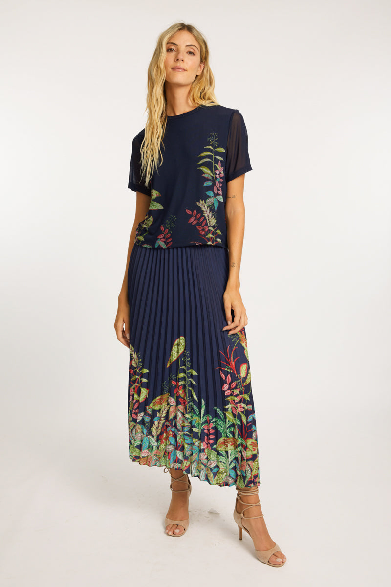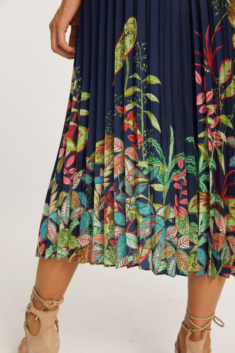 The Lucille Skirt in Midnight Kruger offers an elegant and timeless look with its pleated design and ankle-length hem, making it longer than our Mia Skirt. The soft pleats add texture and movement, while the elastic waistband ensures a comfortable and flattering fit.