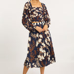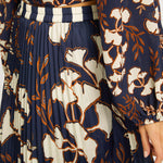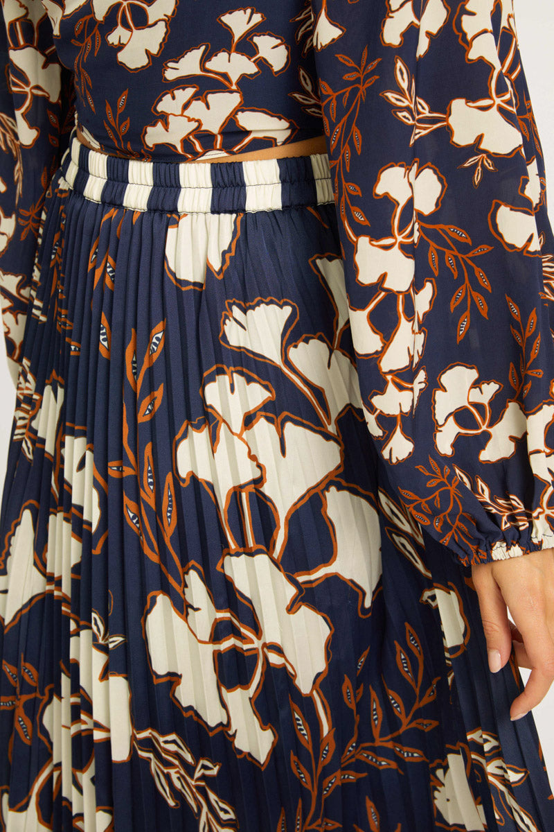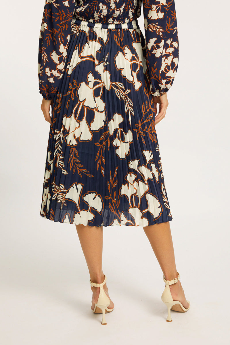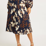 The Ginko Block print features a navy base adorned with delicate ivory leafy florals outlined in a bold brown hue. Our Mia skirt paired with this print brings a fresh and artistic touch to this timeless favorite.