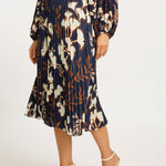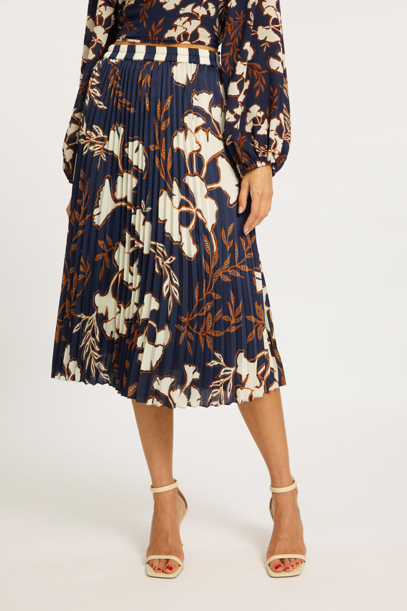 Our best selling Mia skirt is now available in the new Ginko Block Print. This skirt features cascading pleats for a flattering silhouette, a plush elastic waistband for comfort, and a midi length that suits any frame.
