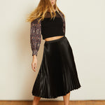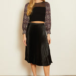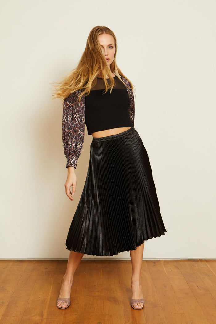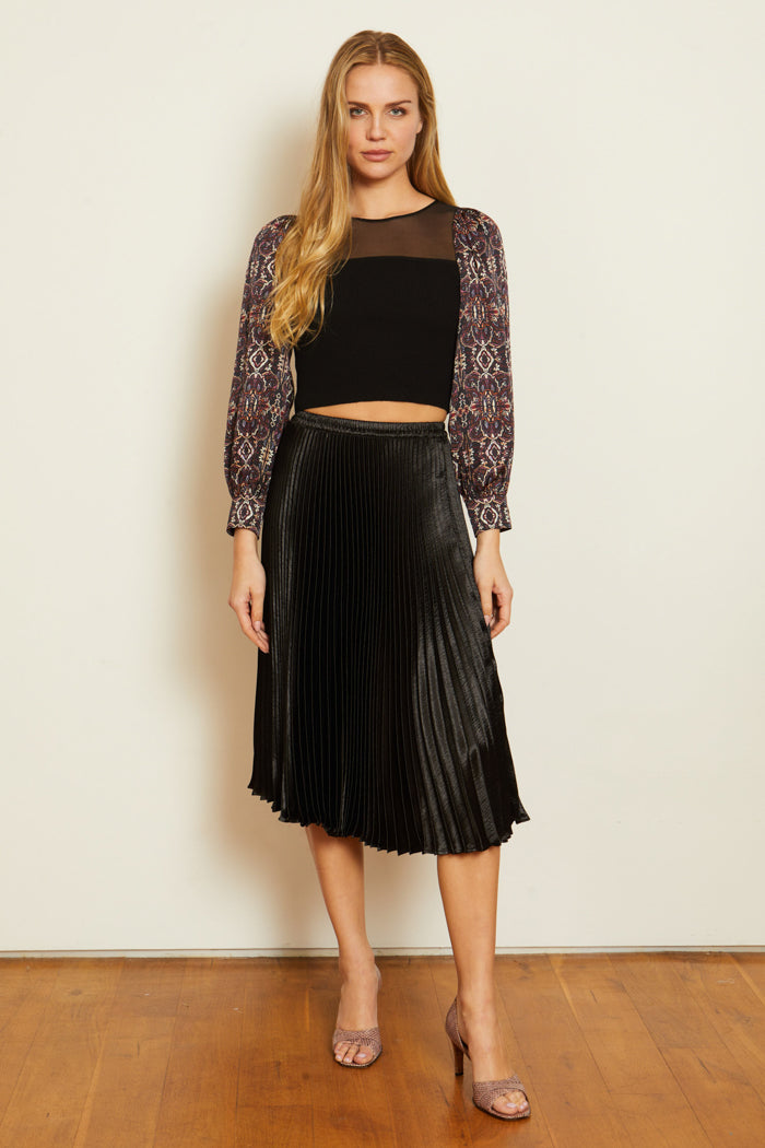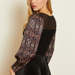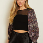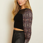 The Morgana Top combines comfort and allure. This long-sleeve crop top features a sheer crew neckline and a solid black ribbed bodice for a perfect fit.