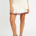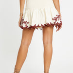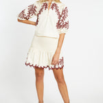 The flounced hem adds a playful, feminine flair, while the intricate embroidery along the hemline enhances its unique character. Whether dressed down with a simple top or styled for a special occasion, the Nadine Skirt is a standout option that effortlessly combines ease and elegance.