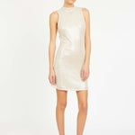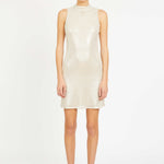 The Rayne Dress in Silver Sequin is a sleeveless mini dress that radiates glamour. Designed with a high neckline and a flattering, tailored silhouette, it features all-over silver sequins for a dazzling finish.