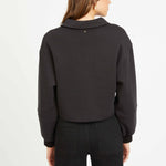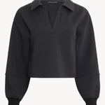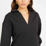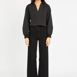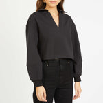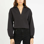 Introducing the Shayla Top, a cropped long-sleeved sweatshirt designed for laid-back style with a modern edge. Made from a soft, textured cotton-poly blend, it features a relaxed V-neck collar and ribbed cuffs for a touch of structure.