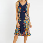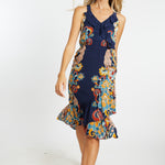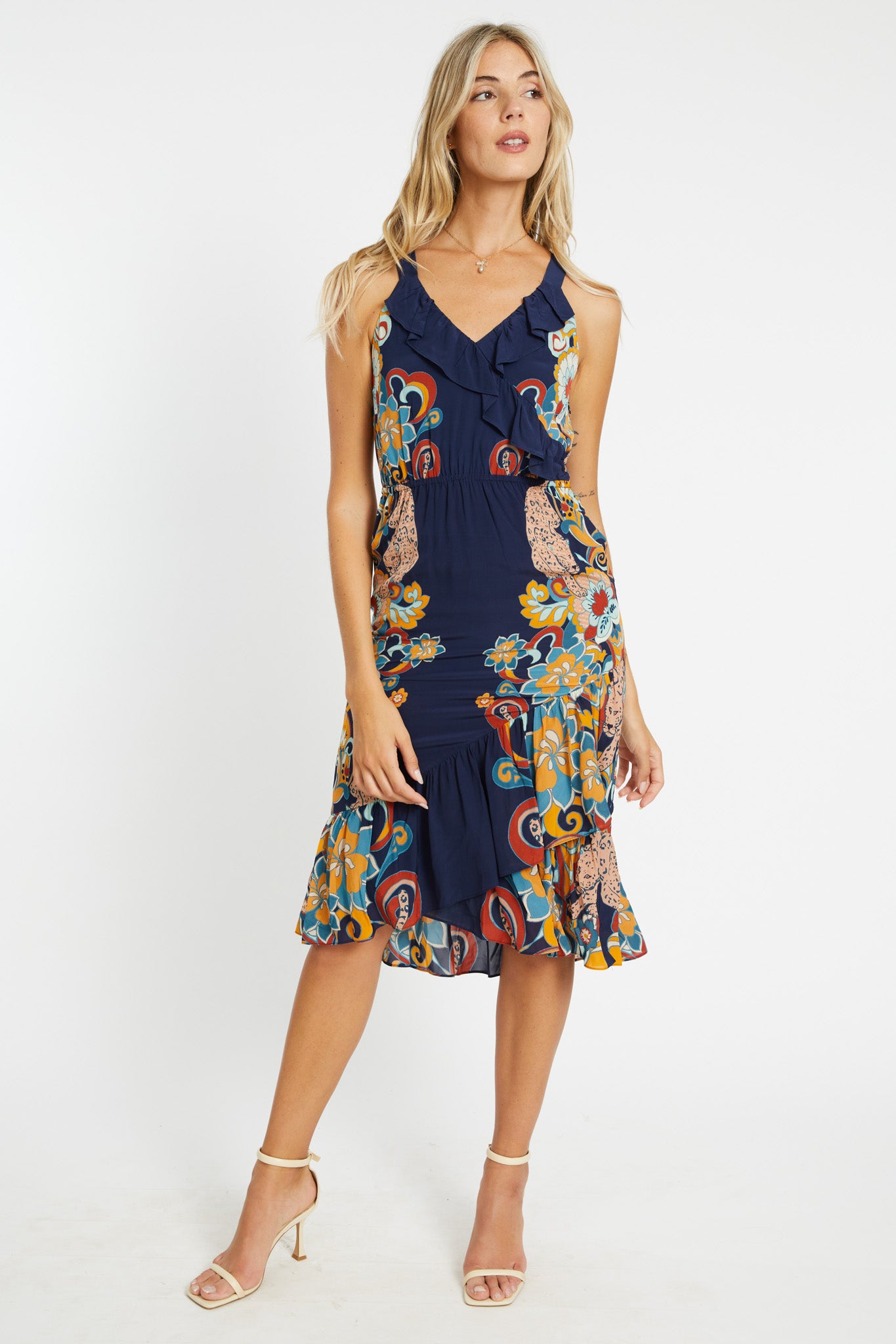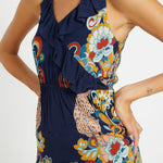 The Tilda Dress is a playful yet sophisticated sleeveless wrap-style dress, crafted in our Cosmic Cheetah print. It features a flattering V-neckline framed by soft ruffle detailing, adding a feminine touch to the bodice. An elasticated waist & smocked back offers comfort and shape, enhancing the effortless silhouette.