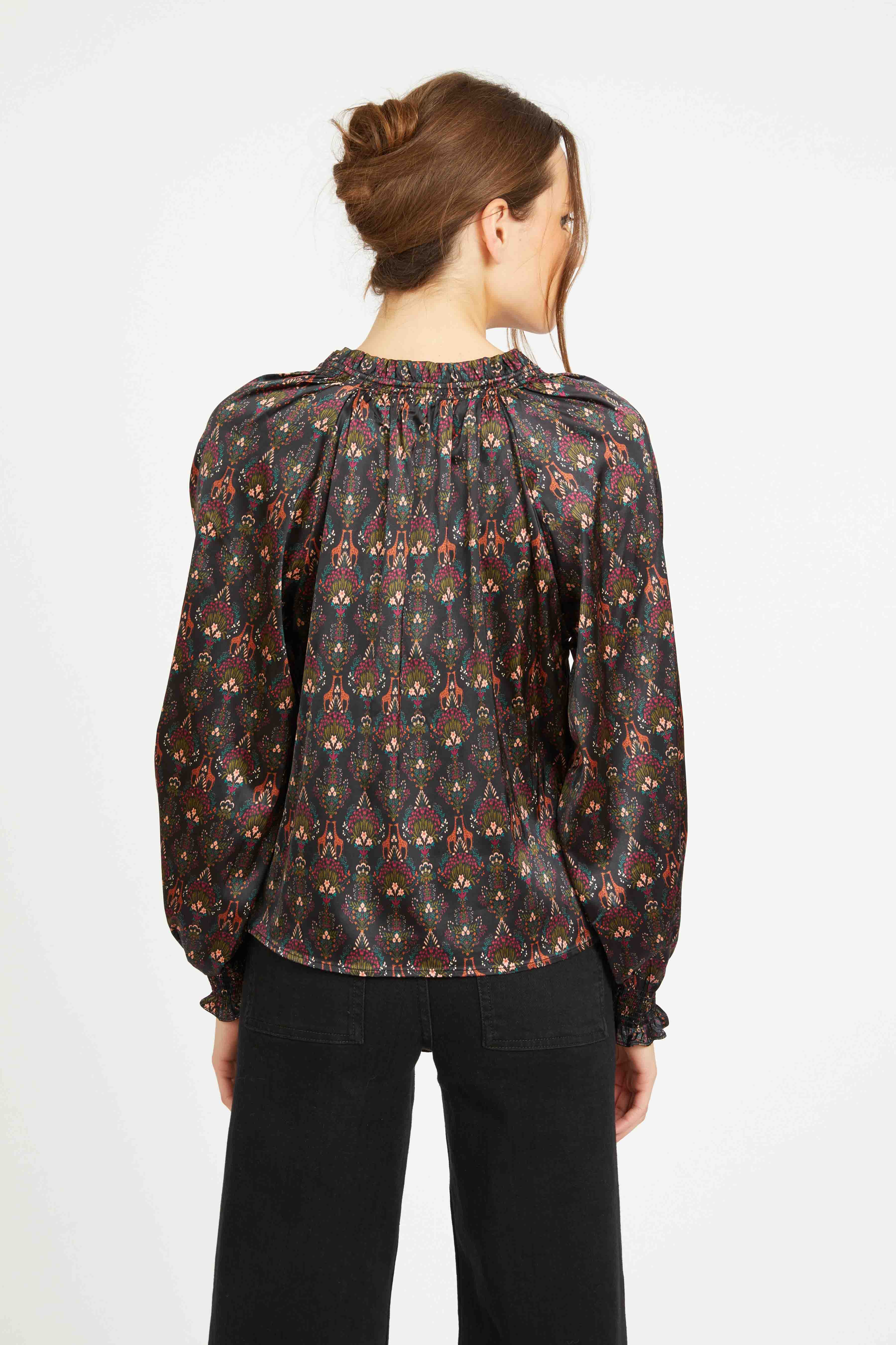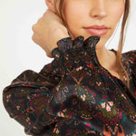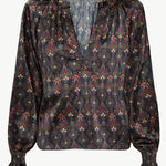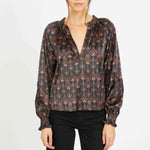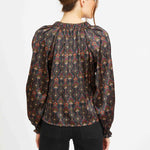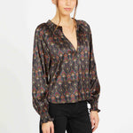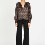 The Vickie Top in Giraffe Bouquet is crafted from a silky viscose blend for a lightweight, elegant drape. This flowy blouse features a split neckline, gathered shoulders, and long sleeves finished with smocked cuffs. The intricate Giraffe Bouquet print adds a sophisticated touch, making it perfect to pair with denim or tailored pants for an effortlessly polished look.
